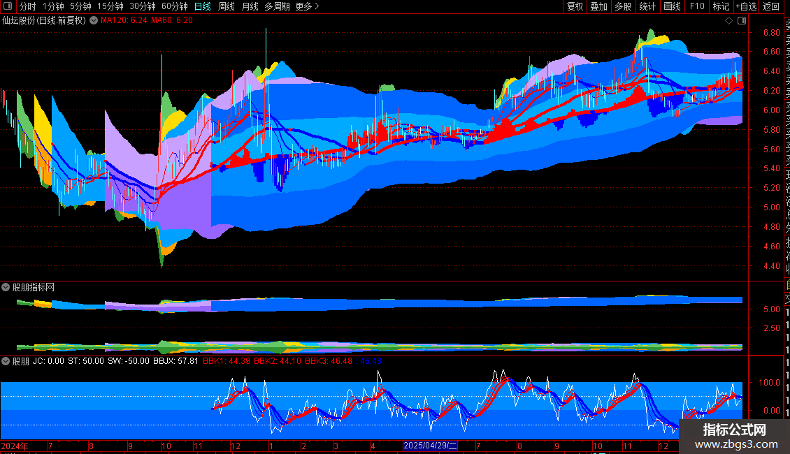 2. 120日均线(红色粗线)为长期趋势核心。当该均线由红转蓝时,表明长期趋势可能发生转向。
