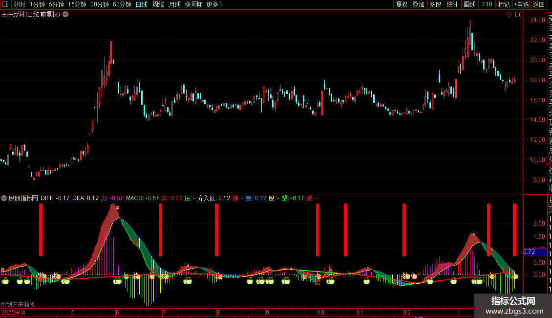 `力`:与`MACD`柱数值相同,但不绘制图形(NODRAW),用于内部计算或数值参考。