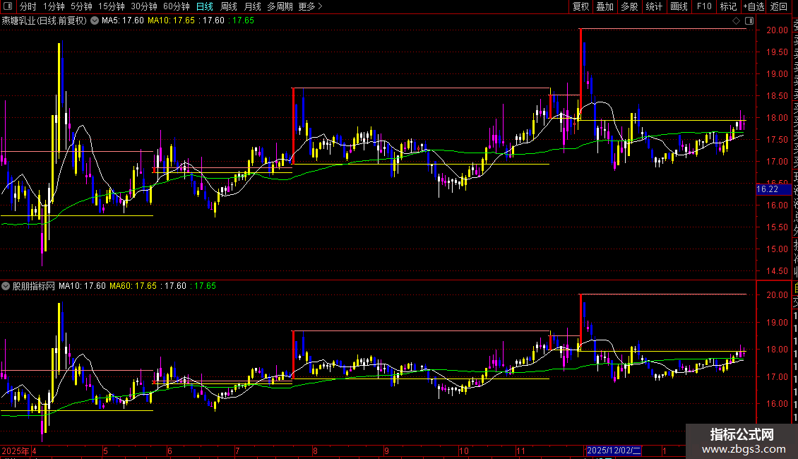 黄金柱定底部,红色芯柱结合黄金柱与双划线,形成明确强弱分界,为波段操作提供精准锚点。最低价黄线加收盘价淡红线有效标识底部区域。