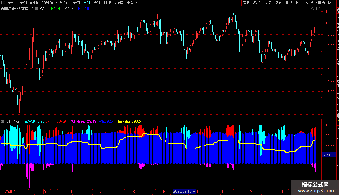 - 可结合筹码重心线的趋势(向上或向下)辅助判断中长期方向。