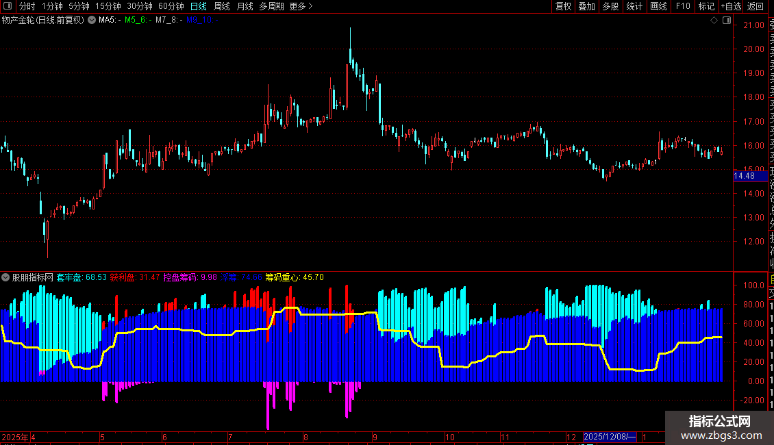 - 指标基于历史筹码分布计算,需结合股价趋势、成交量等综合使用。