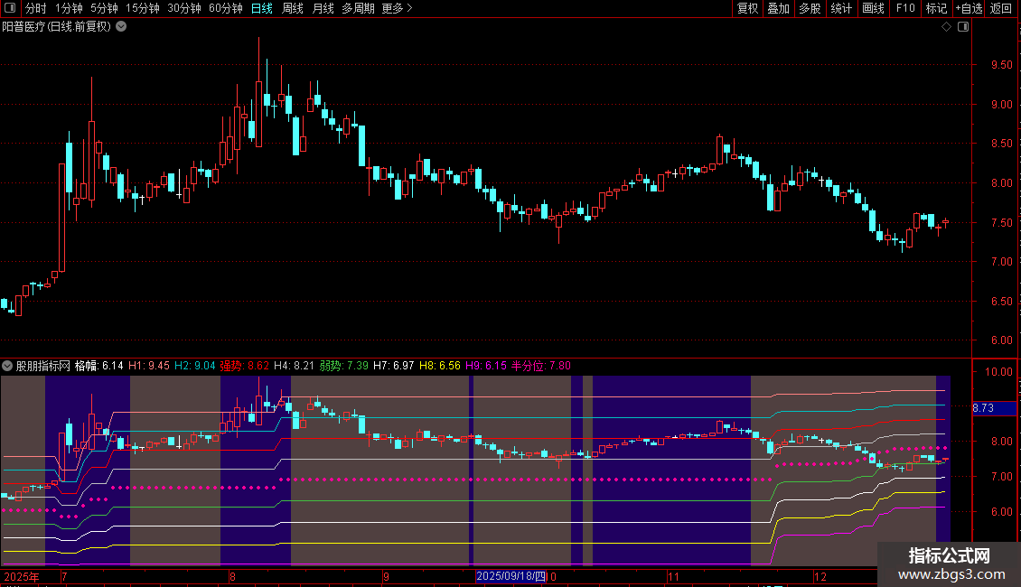 半分位:高-(高-低)*0.55,POINTDOT,LINETHICK4,COLOR9900FF;