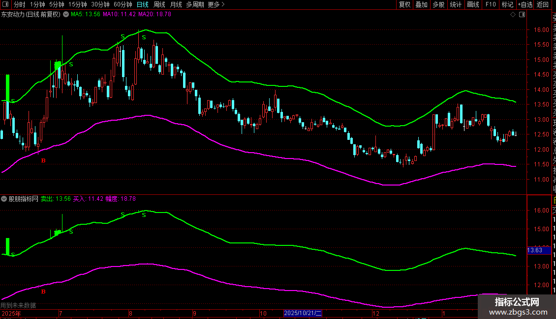 4. 幅度:计算`(卖出线 - 买入线) / 买入线 100`,得到两线之间的百分比宽度,该值不直接显示在图上。