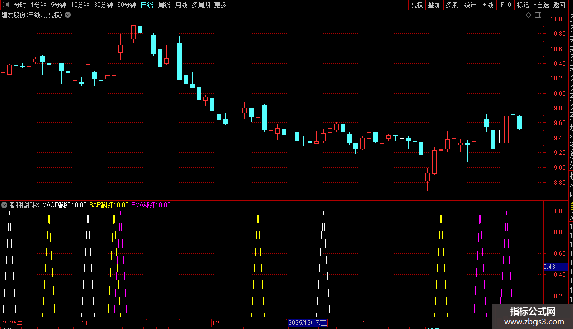 3. 观察三个“翻红”信号是否出现(即信号线数值变为1)。根据“牛熊三色”理论: