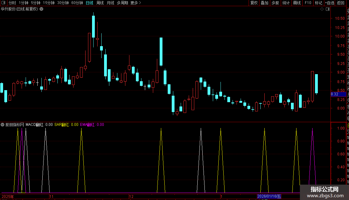 2、SAR指标,股价重新回到SRA指标以上,SAR转向到股价之下运行即为翻红;