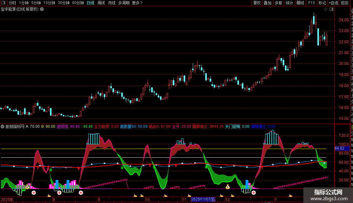底部买:=LLV(波段线,2)=LLV(波段线,8);