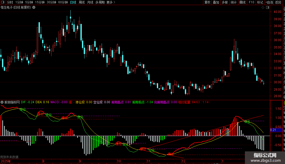 该公式通过多维度展示MACD指标状态,结合趋势线、水平支撑阻力位和量化能量指标,为判断趋势强度和转折点提供综合参考。