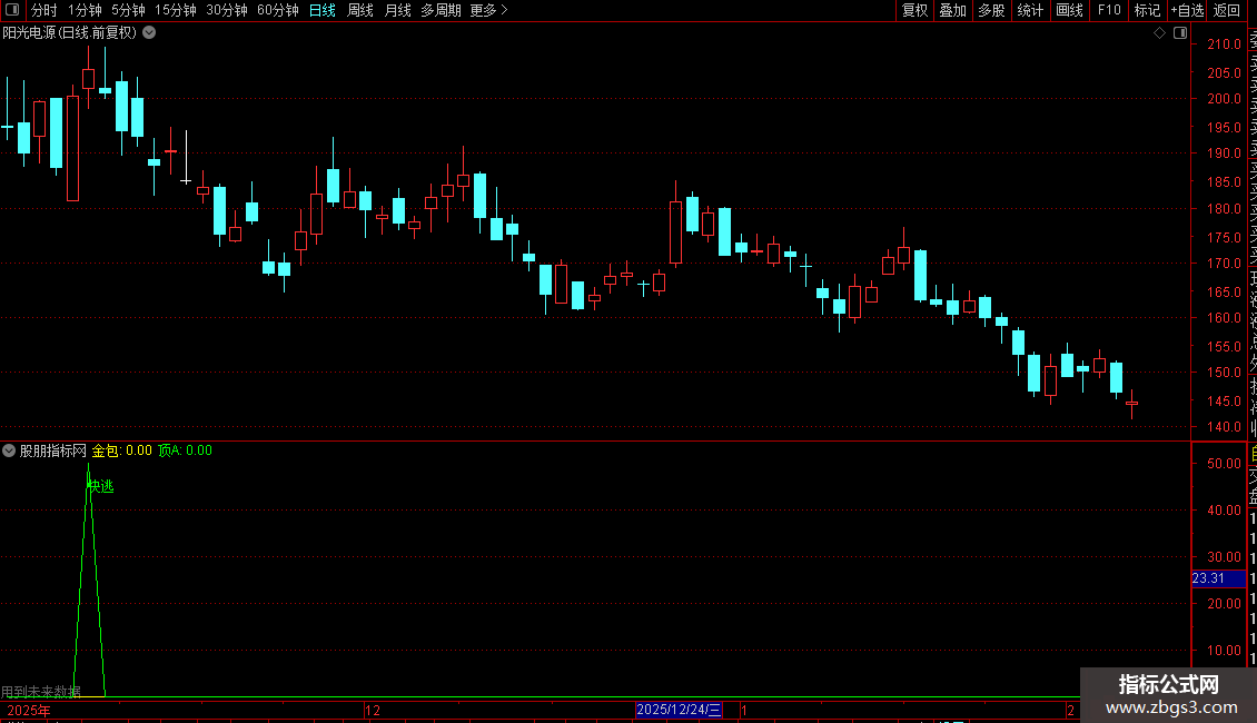 “金包”信号:这是一个抄底或反弹买入提示信号。它试图捕捉价格在经过一段下跌后形成阶段性低点(波谷)的时机。当出现“金包”文字提示时,表明公式认为可能出现了短期低点。