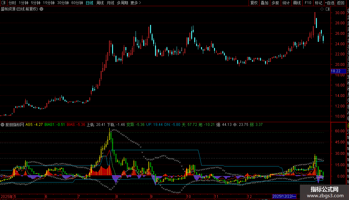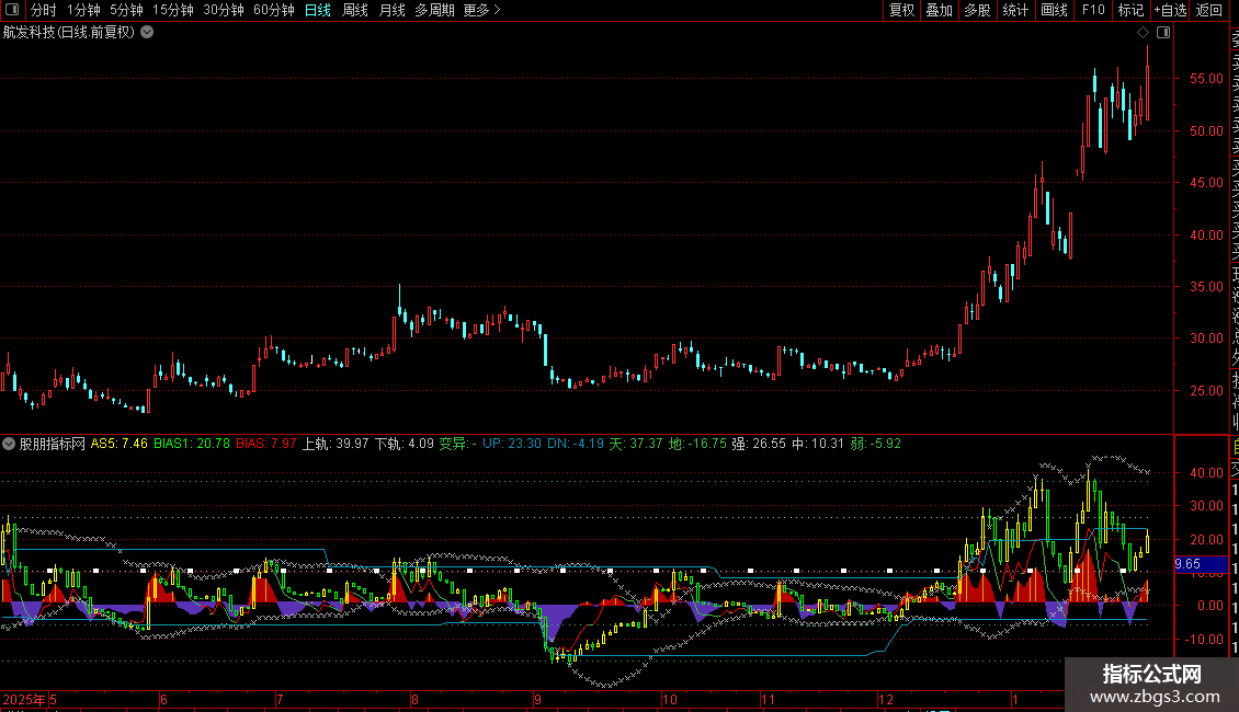 上轨:MA(BIAS1,20)+1.618*STD(BIAS2,20),COLORLIGRAY,CROSSDOT;