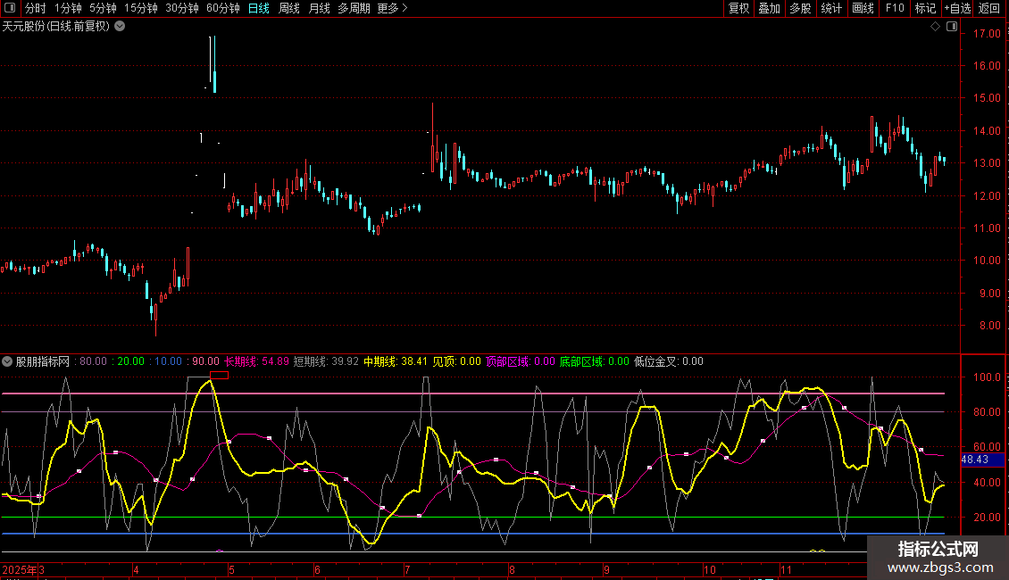 4) 中长期曲线的顶底部背离特征,用法类似传统指标。