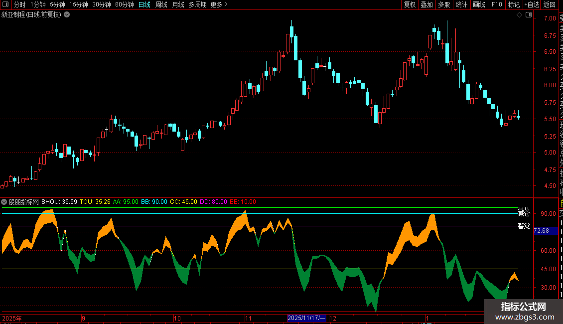 SHOU:SMA(MAX(CLOSE-SHI,0),N1,1)/SMA(ABS(CLOSE-SHI),N1,1)*100;