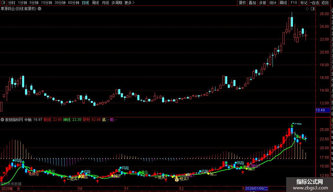 DRAWTEXT(减仓,HIGH*1.02,'◆风险'),COLORCYAN;