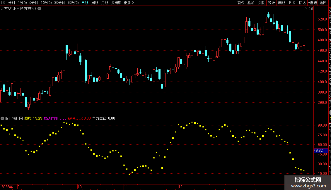 启动在即: IF(CROSS(趋势,3),100,0),COLORFF00FF;