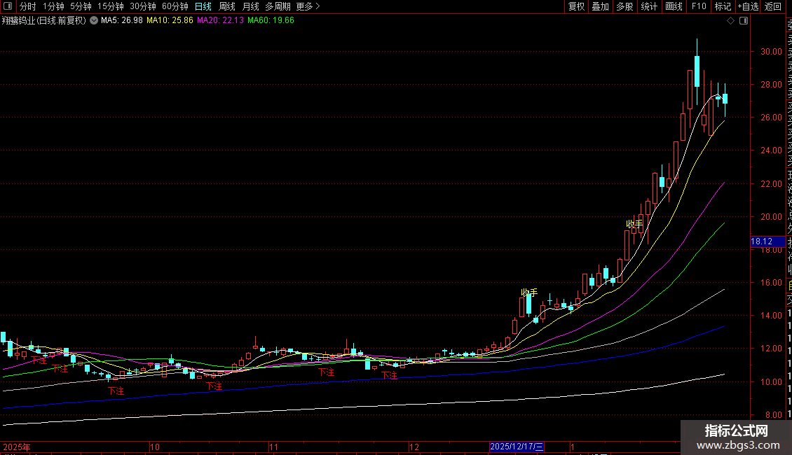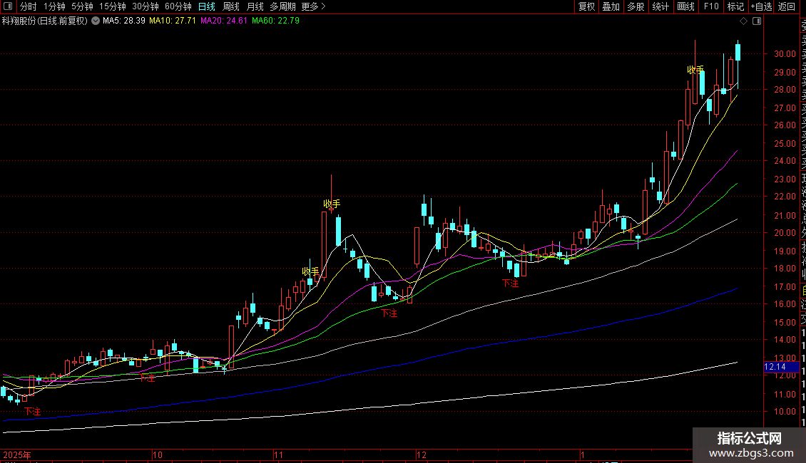 DRAWTEXT(CROSS(J,REF(J+0.01,1)) AND X AND J<20,LOW*0.95,'下注'),COLORRED;
