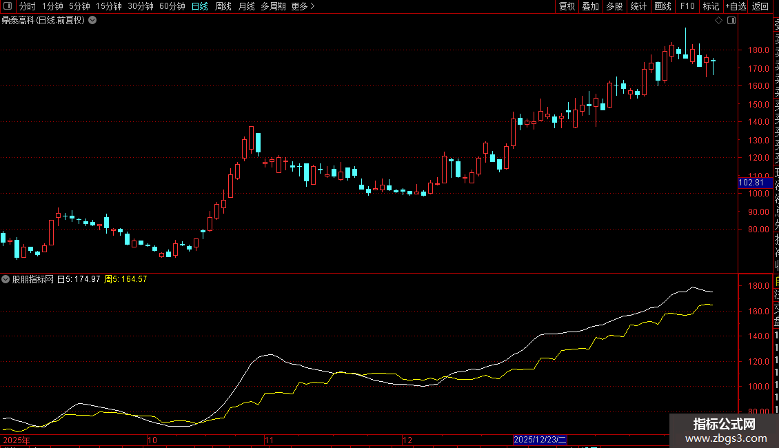 周5:(REF(CLOSE,T)+REF(CLOSE,T1)+REF(CLOSE,T2)+REF(CLOSE,T3)+CLOSE)/5;
