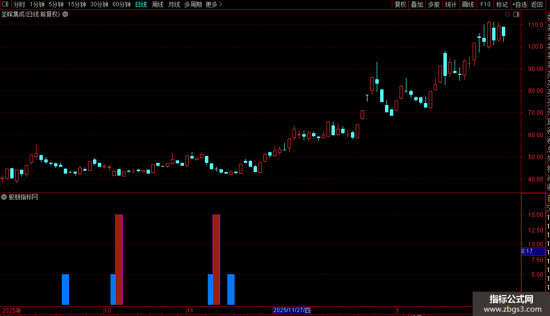 A8:=((A7 AND ((A3 / REF(A3,3)) >= 3)) AND (A6 < 80));