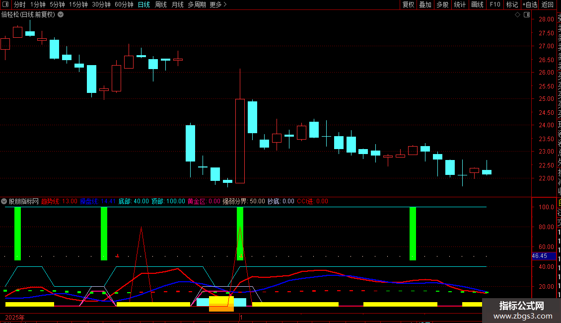 底部:IF((趋势线-VAR6<(-65)),20,40),COLORF0F000;