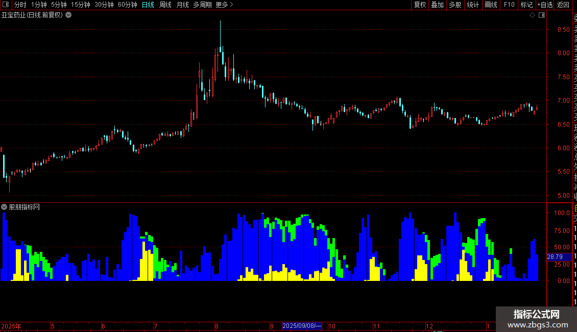 黄色主力出货: STICKLINE(VAR4<0,0,VAR3,2,0),COLORYELLOW;