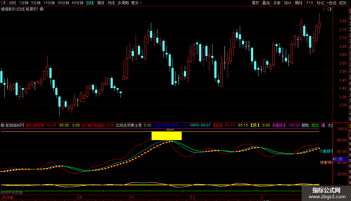 短吃:DRAWTEXT(ISLASTBAR=1 AND CROSS(【强弱】,Y2),80,'短期吃货!'),COLORFFFFCC;