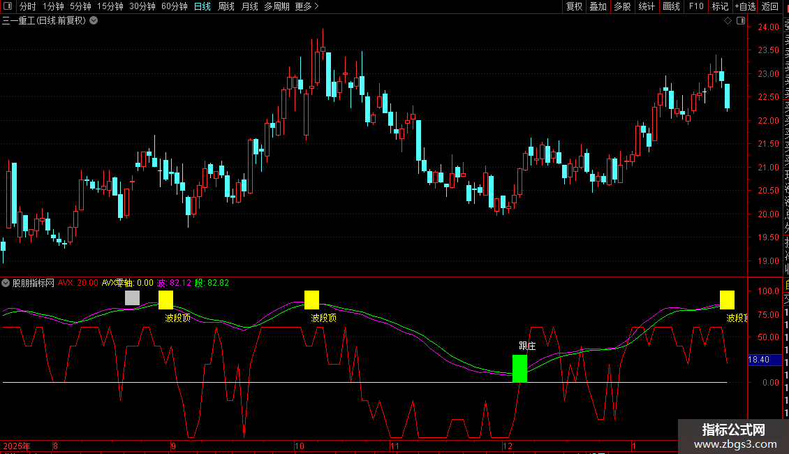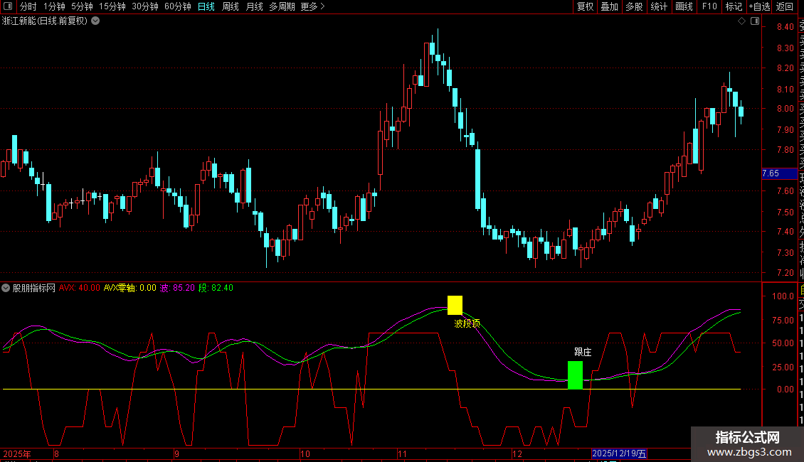 用法:在跟庄图标出现时建仓,在未出现波段顶时来回短炒。在红线下探-(-50) 横盘时补仓,红线上了(+50)后转头向下破线下后应及时减短线仓(如是T高手,一破就走人,逢低再买回,我不是玩T合格高手,我一般破+40后,我就闪),来回玩下短炒。波段线绿线与粉红线过了100时,小心行事了,慢慢减仓。玩短炒一般吃点鱼身是可行的。