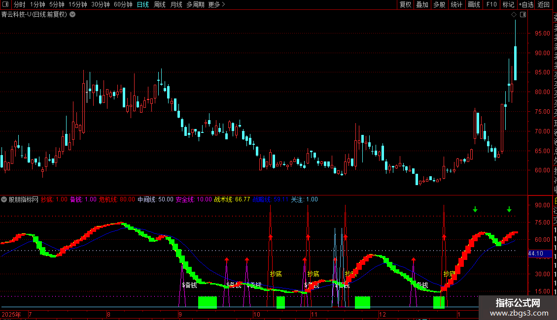 抄底:IF(VAR5,90,1),COLORRED;