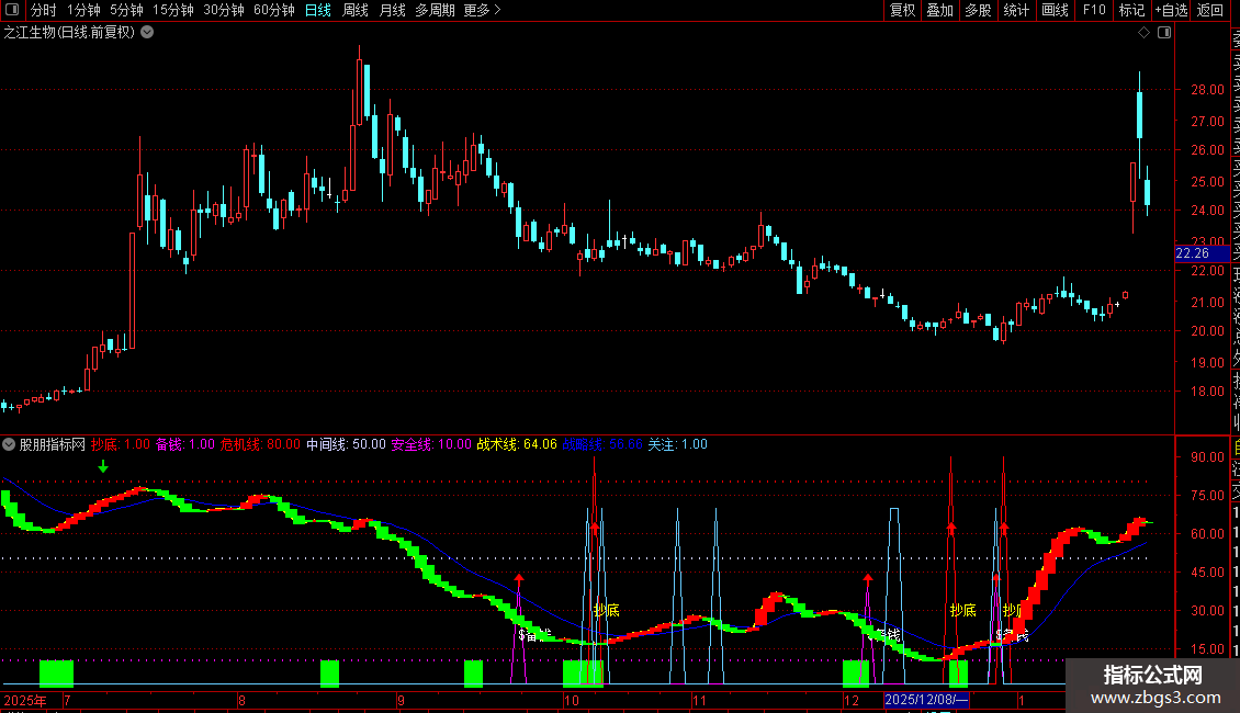 短线逃顶:=IF(I,0,1),COLORGREEN;