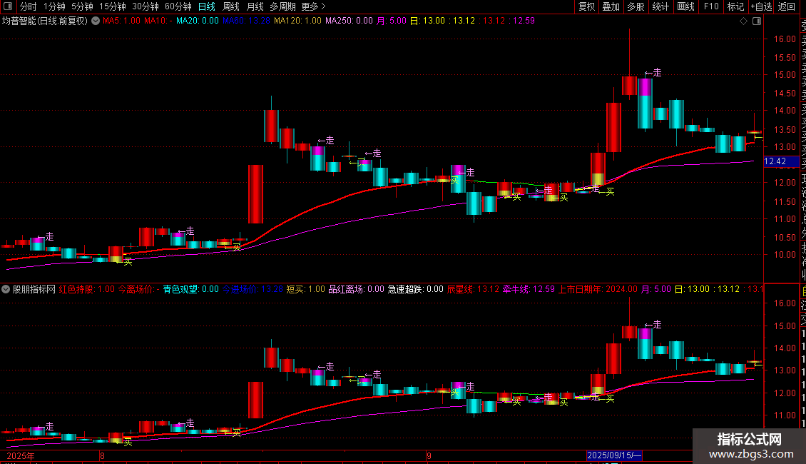DRAWTEXT(品红离场,REF(CLOSE,1)+0.1,'←走'),COLORFF99FF;