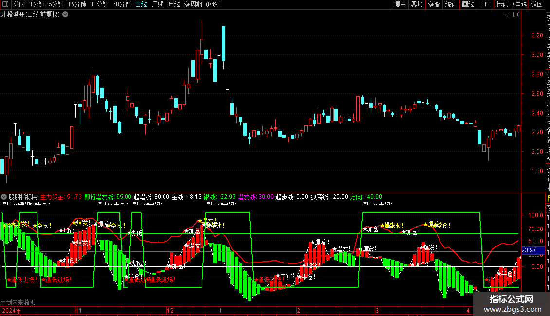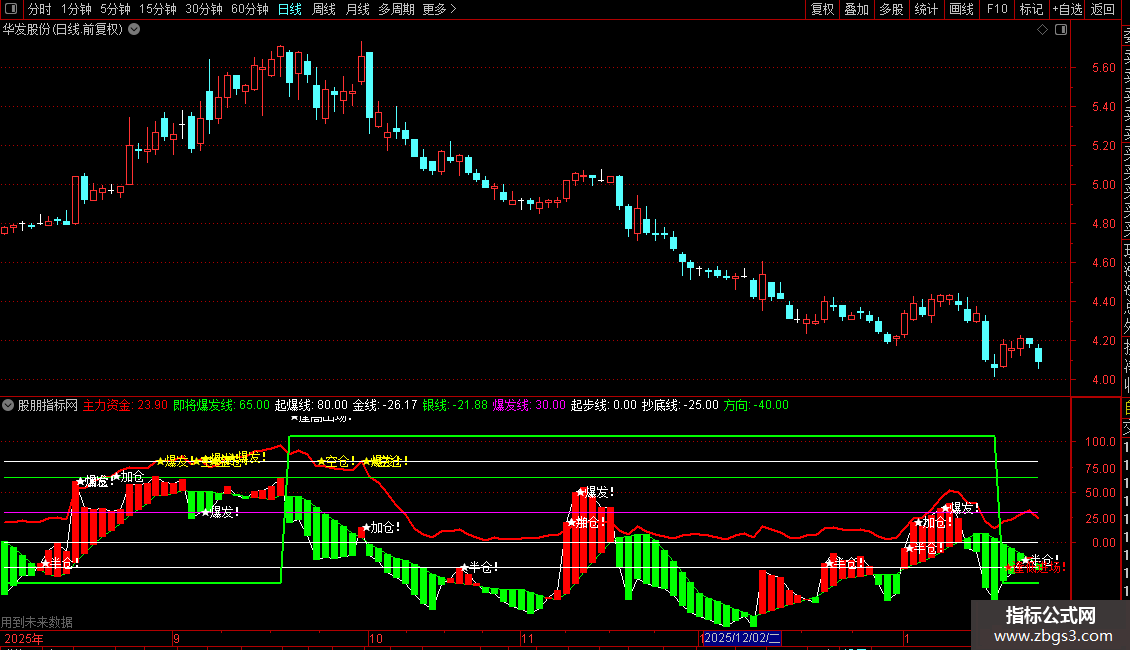 DRAWTEXT(CROSS(主力资金,即将爆发线),主力资金,'★加仓') ,COLORWHITE;