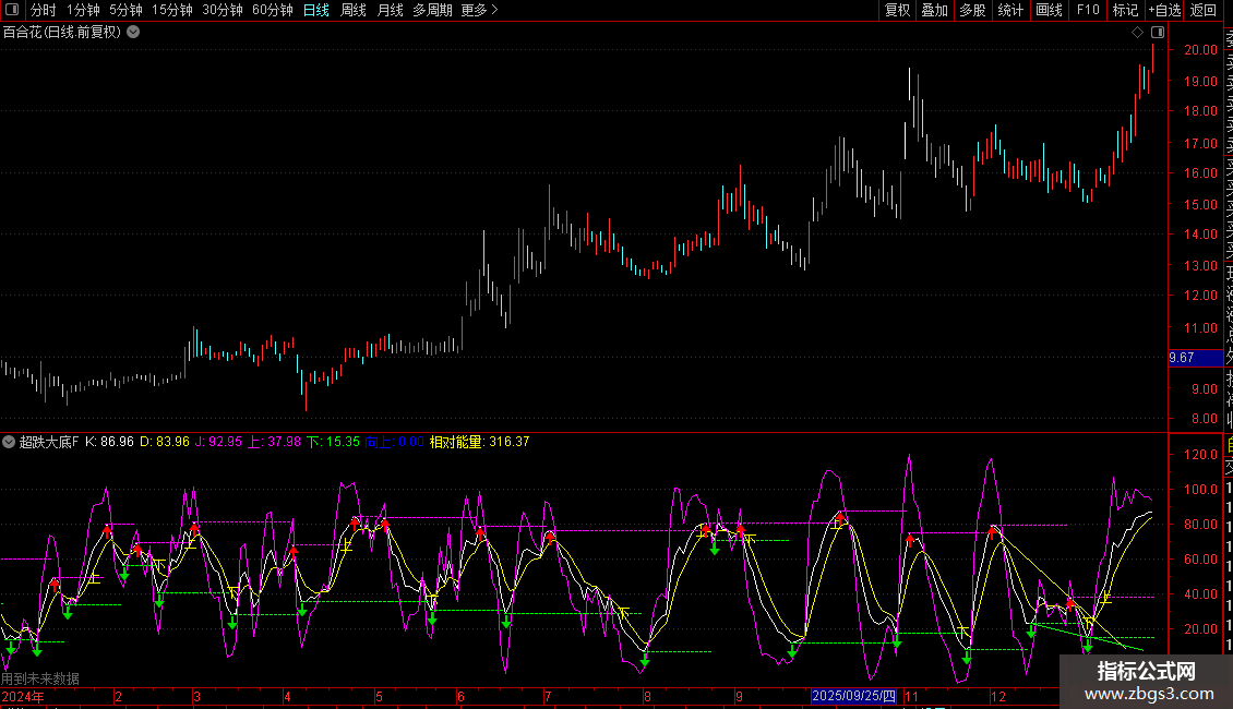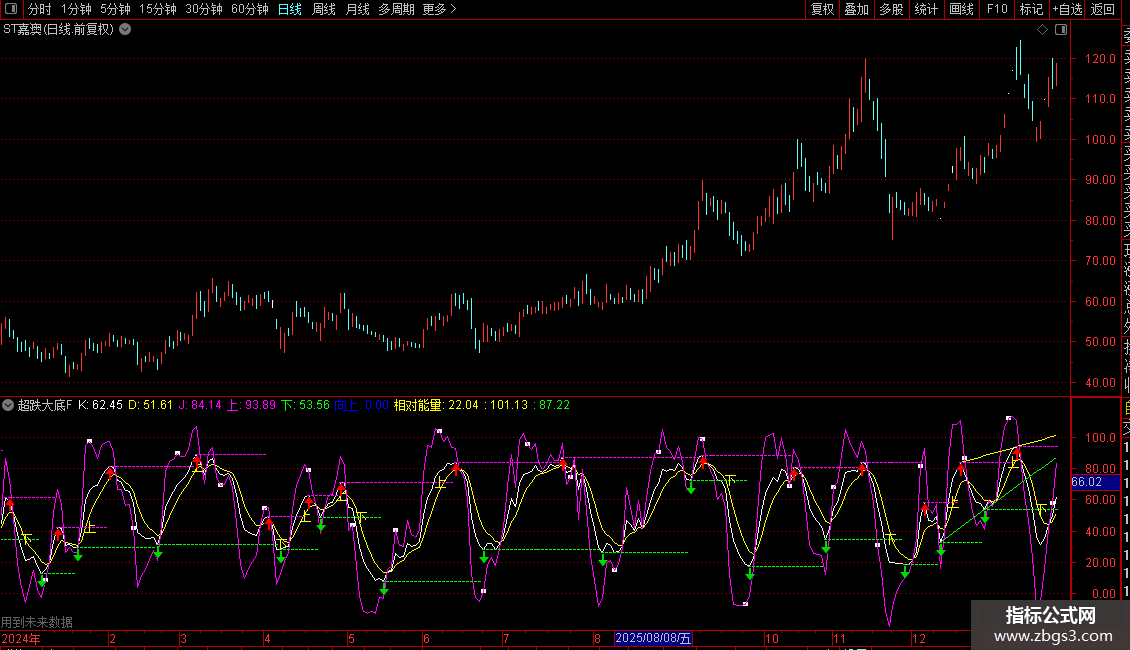 相对能量:(OBV-下)/(上-下)*100,COLORYELLOW,NODRAW;