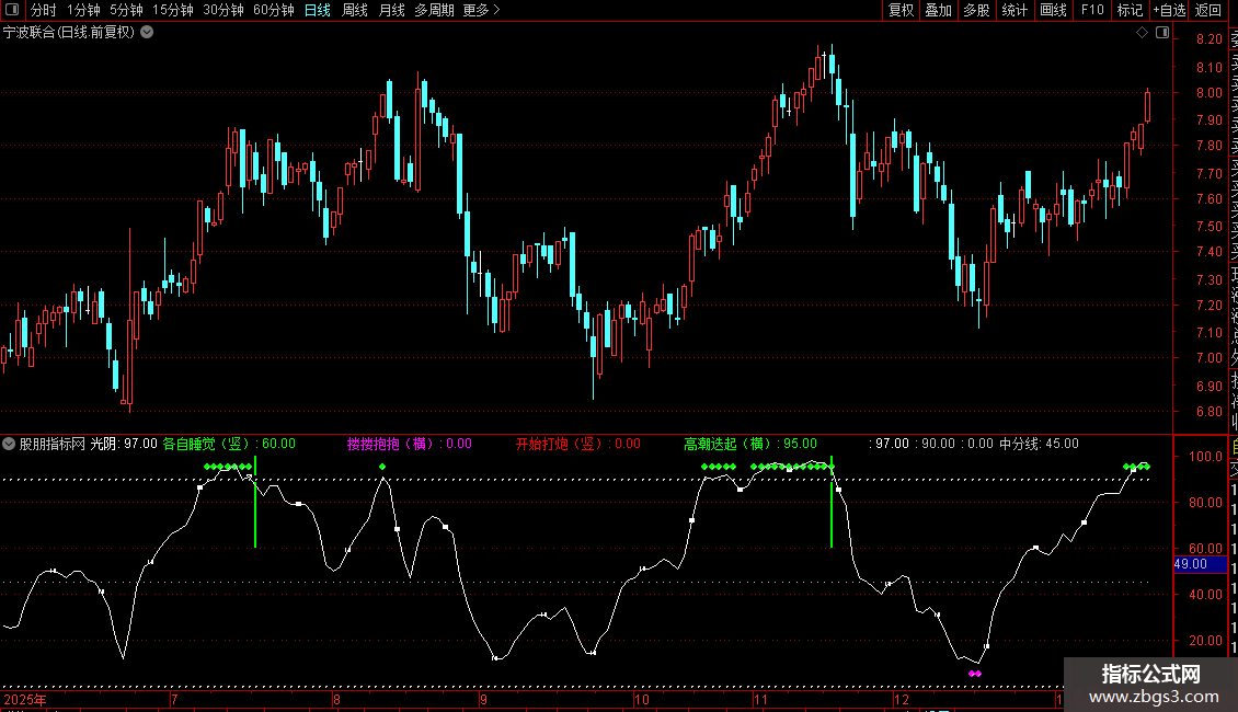 高位绿点小心,低位紫点关注,红柱跟庄}