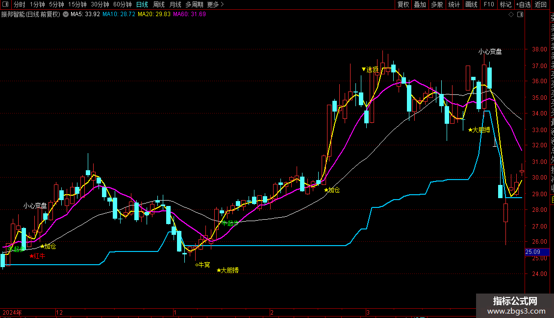 DRAWTEXT(FILTER((A2AA>-0.5),84),(HIGH)*(1.05),'小心变盘'),COLORFFFFFF;