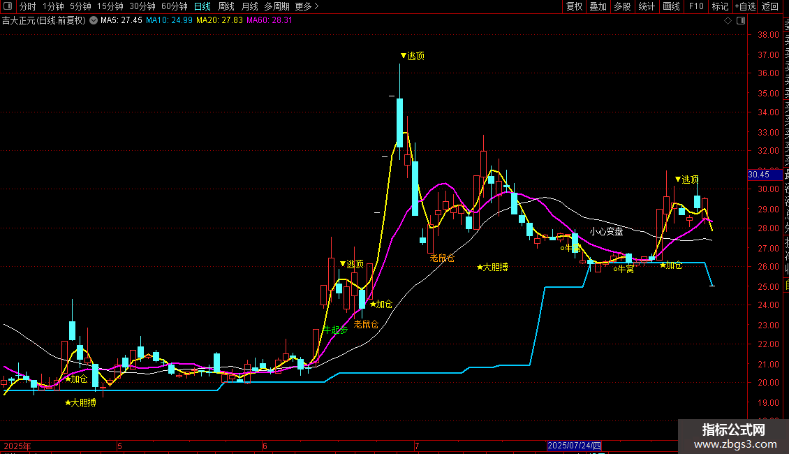 DRAWTEXT(FILTER((VAR4AA>90),45),(LOW)*(0.93),'★大胆搏 '),COLOR00FFFF;