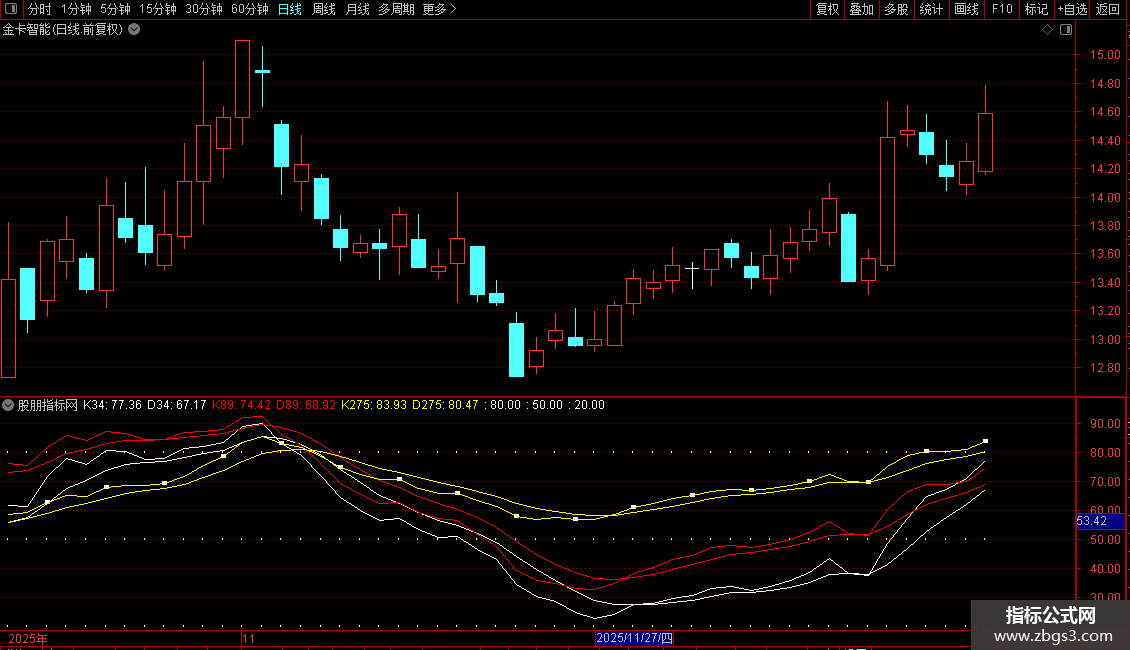 本指标为经典指标KDJ共振,主抓趋势,月趋势,日趋势,60分钟,30分钟趋势,分时趋势,通通包含,抄底必备,见图,上码! 有精确买卖点!!!!}