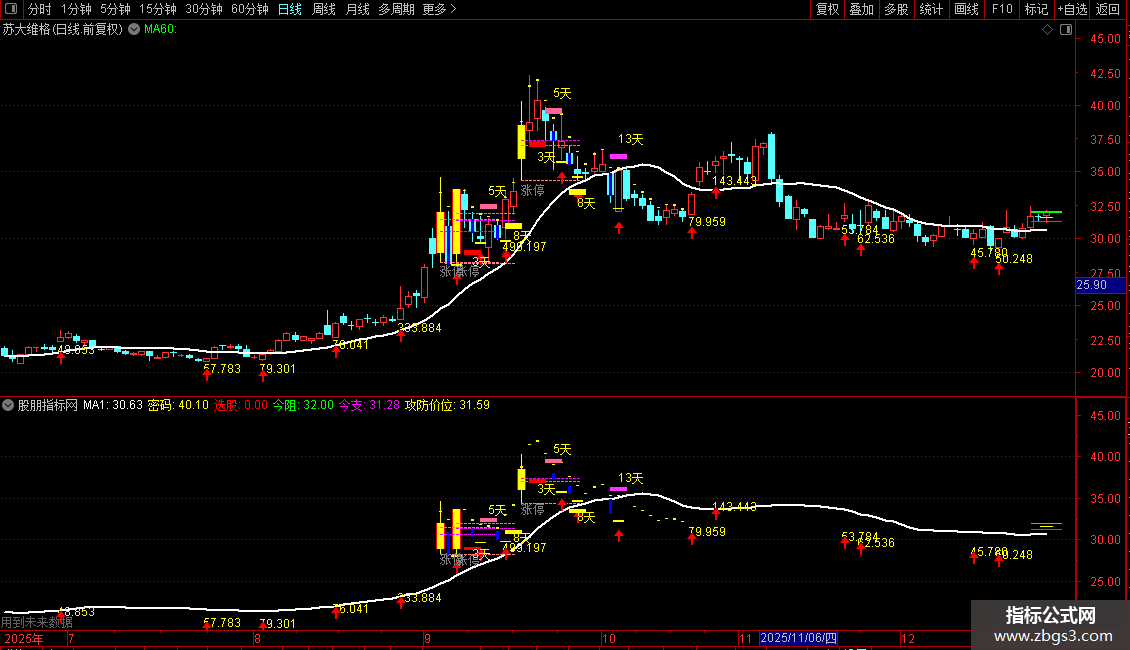 DRAWTEXT(VARZT=2,L*0.95,'3天'),COLORYELLOW;