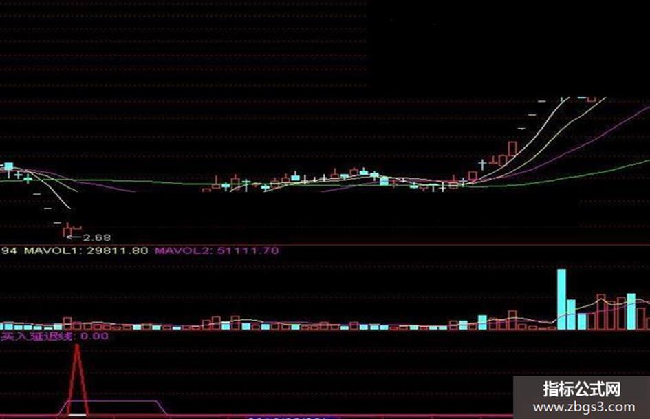 VAR2:=TROUGHBARS(3,15,1)<10; VAR3:=PEAKBARS(3,15,1)<10; VAR4:=IF(VAR2=1,50,0); VAR5:=IF(VAR3=1,50,0); 底部:=IF(VAR4=50,10,0); 多头能量:0,COLORWHITE,LINETHICK2; 买入:IF(底部=10 AND REF(底部,1)=10 AND REF(底部,2)=0,50,0),COLOR0000CC,LINETHICK2; 买入延迟线:底部,LINETHICK1;