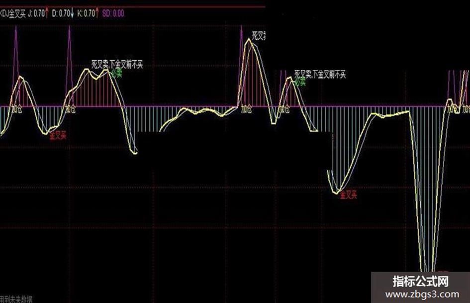 DRAWTEXT(FILTER(CROSS(D,K)AND J>0.2,5),D+0.09,'死叉卖,下金叉前不买');