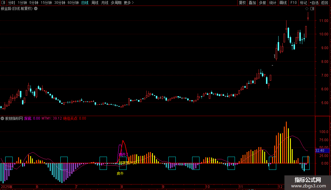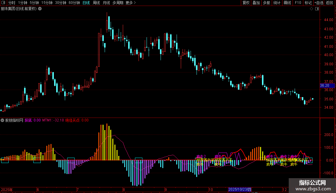 DRAWTEXT(CROSS(绝佳买点,3.60000) ,28,'疯牛2'),COLORFF00FF;