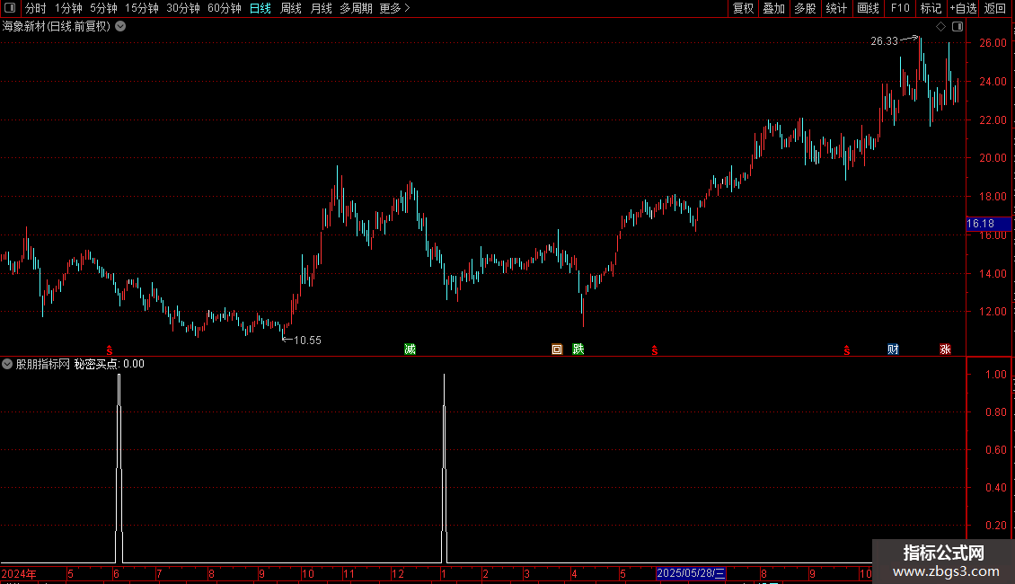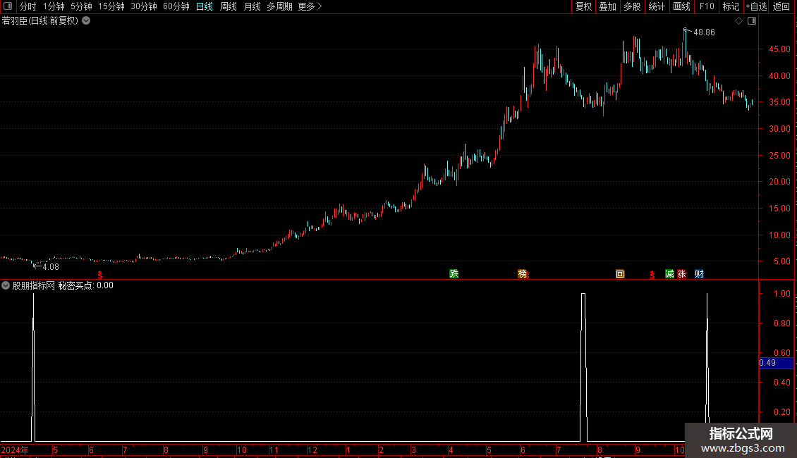 NG1:=20;VARG2:=((3 * SMA((((CLOSE - LLV(LOW,NG1)) / (HHV(HIGH,NG1) - LLV(LOW,NG1))) * 100),5,1)) - (2 * SMA(SMA((((CLOSE - LLV(LOW,NG1)) / (HHV(HIGH,NG1) - LLV(LOW,NG1))) * 100),5,1),3,1)));秘密买点:VARG2 <= 3;