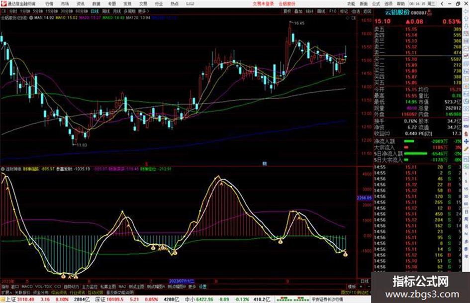 输出财神指路: VAR5-VAR6,画黄色, 线宽为2
