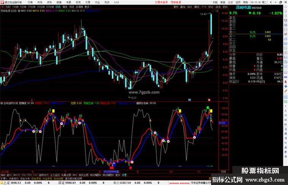 DRAWICON(CROSS(短期线,长期线),长期线*1.1,7);