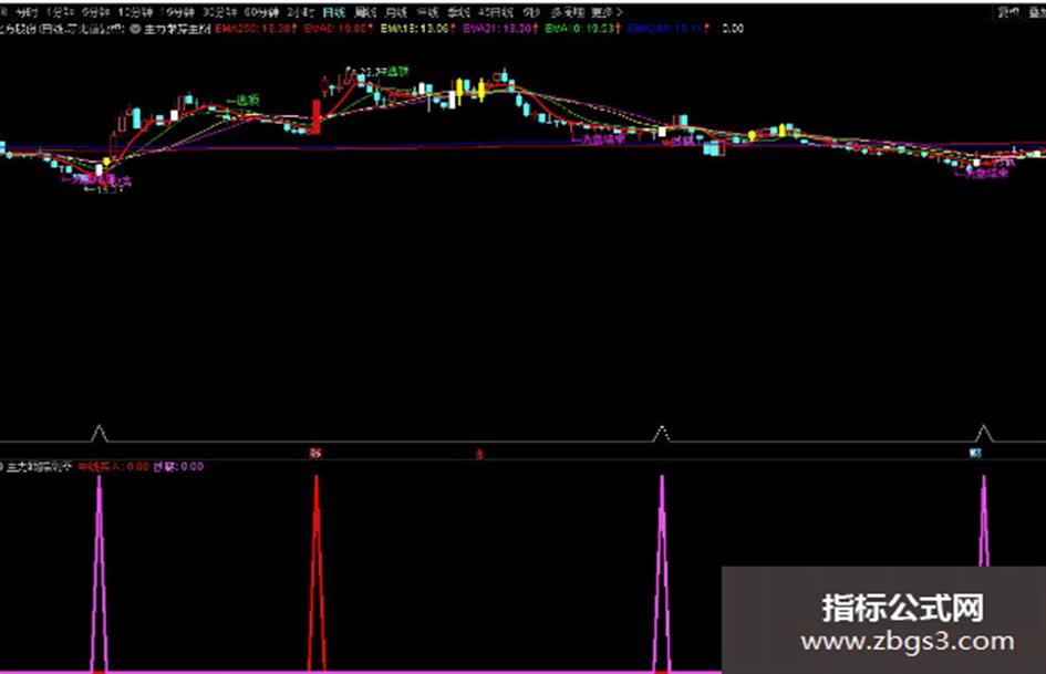 输出EMA21:收盘价的21日简单移动平均,COLORFF00FF