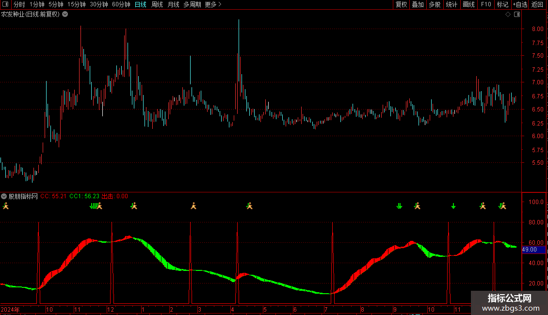 1. CC线(红色):由VAR5(60日价格相对位置)经20日平滑计算得出,代表中期趋势。