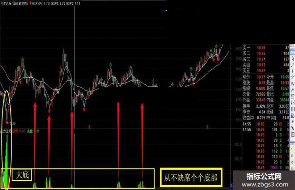 主力进场:这个指标在底部都会出现,从不缺席,但是却又是模糊的。虽然如此,也不失为一个很好的辅助性指标。