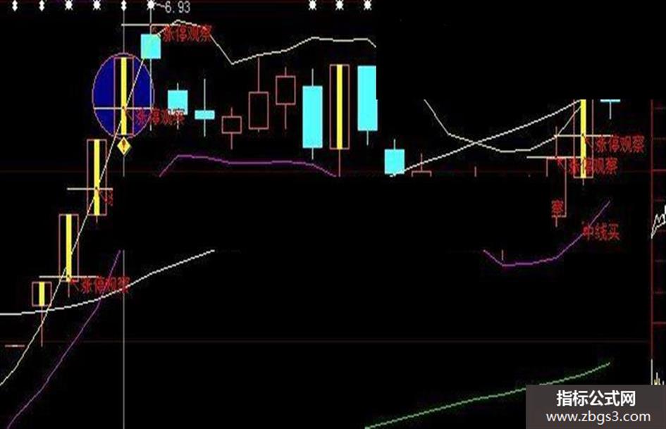 zt:=1.1*REF(C,1)-C<=0.01; STICKLINE(zt=1,C,O,2,0),COLORYELLOW; 涨停观察:SELFDATA('涨停观察'),LINETHICK0; DRAWTEXT(涨停观察>0,涨停观察,'↖涨停观察'),COLORRED; STICKLINE(涨停观察>0,涨停观察,涨停观察,22,0),COLORYELLOW;
