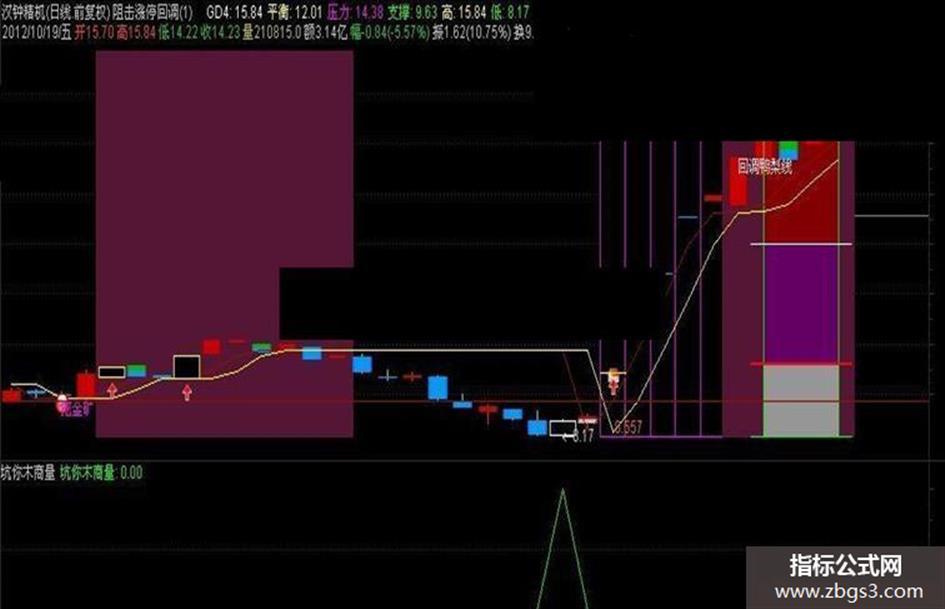坑爹:=REF(HHV(H,15),1); 坑你:=REF(LLV(L,15),1); 慎用:=REFDATE(坑你,DATE); 坑你木商量:IF(慎用=L AND ((C-L)>(O-C) OR (O-L)>(C-O)),1,0);