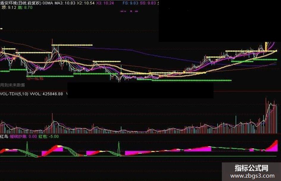 上碎型:IF((HIGH >= R2),UL,REF(UL,BARSLAST((HIGH > R2)))),LINETHICK0,COLORFF00FF;