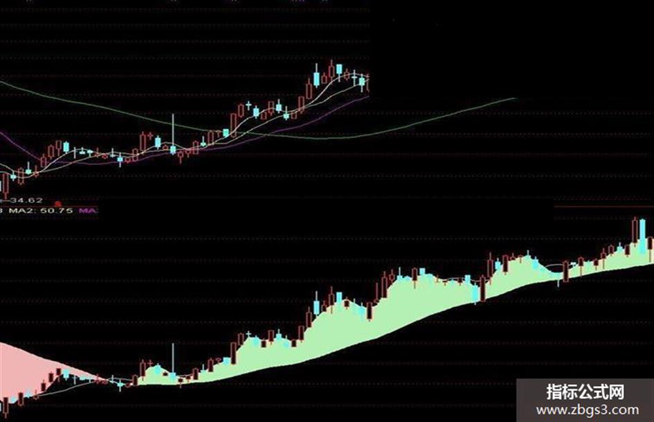 DRAWBAND(MA2,RGB(240,180,180),MA3,RGB(180,240,180));DRAWKLINE(HIGH,OPEN,LOW,CLOSE);
