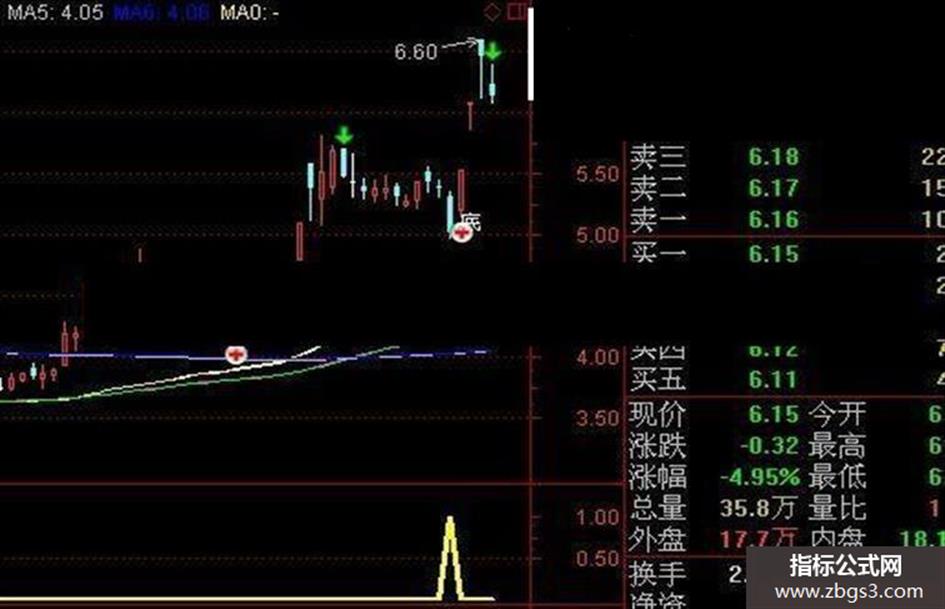 买点:=IF(CROSS(M18,M2),5,0* 10000),COLORFF00FF,LINETHICK2;