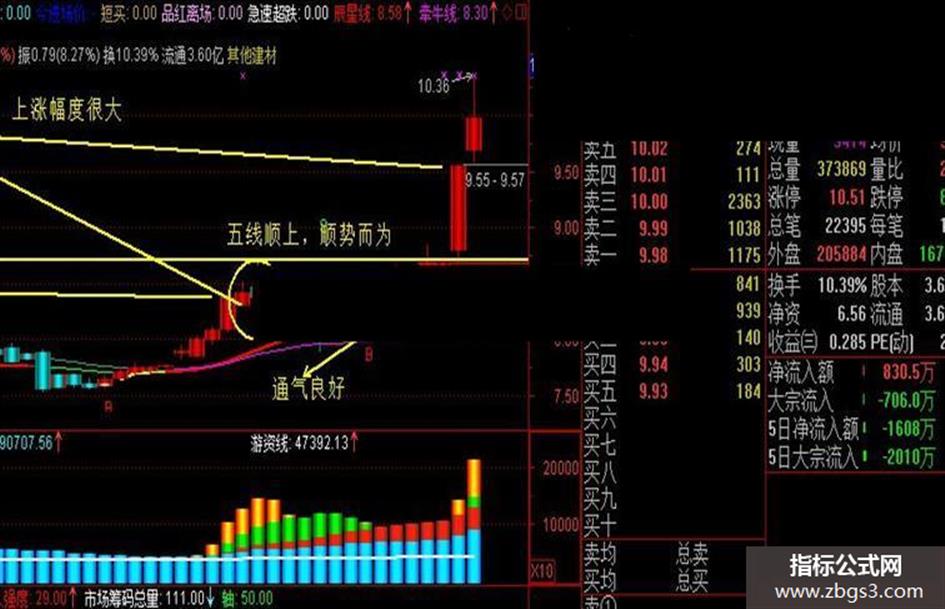(天天进金)模式:1,选股:以量为基础,每天收盘15分钟后下载完整数据,用‘自己专用换手率和量选股’,一般数量不会很多。2,看资金:为自己专用看主力,大户,游资,散户介入使用。注意主力出货也体现出来,要注意甄别。可能很多人也有类似的指标,我想说的是,这仅仅是我自己操作模式的组合之一,每人可以按照自己操作习惯组合。3,看k线,只捉上升趋势,放弃下行股票,这个非常重要。因为我不知道下行股票什么时候是底。4,结合软件其他指标-macd,kdj等配合筛选。