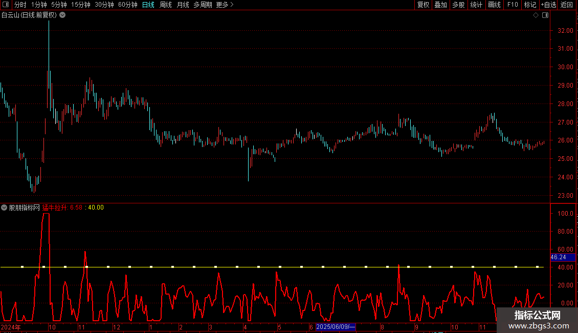 猛牛拉升:IF(B<-20,-20,IF(B>100,100,B)),COLORRED,LINETHICK2;